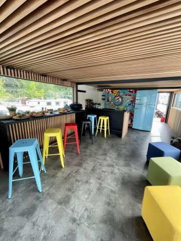 Our boat features a spacious interior design where you'll feel more than comfortable. The indoor space is equipped with a bar, self-service fridge, toilet, JBL speakers, a kitchenette, and comfortable seating. So, if unfavorable weather surprises you during the cruise, you don't have to worry.